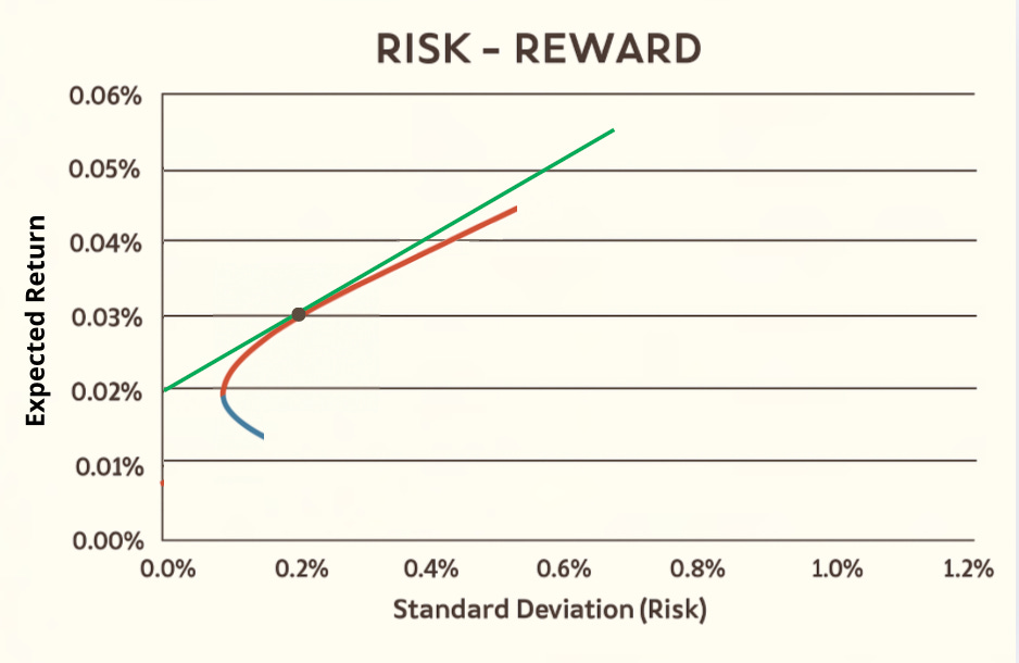 The Tangency Portfolio is the portfolio with the highest return per unit of volatility compared to any other available portfolio. It’s not the best in any case. It’s the best if your risk appetite on reward research is null.