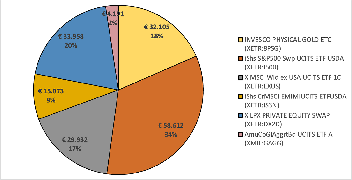 Another bad month. Gold is my only asset that continues to grow. Next month I’ll finish to invest the set aside money. The investments for the subsequent months will be more